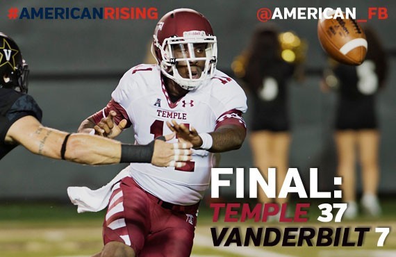 Temple beat a Southeastern Conference team for the first time since a victory over Florida in 1938. The Owls spoiled the head coaching debut of Vanderbilt's Derek Mason, hired after James Franklin left for Penn State.