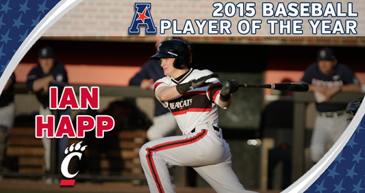 CLEARWATER, Fla. – Cincinnati outfielder Ian Happ, who finished the regular season as the American Athletic Conference’s leading hitter, was chosen as the conference’s player of the year by the league’s eight head coaches.
