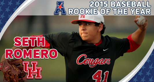 Romero was named as The American Rookie of the Year after he went 7-3 with a 1.73 earned run average during the regular season. Romero has struck out 74 batters and walked 18 in 67.2 innings and has held opponents to a .214 batting average to help Houston win the outright American Athletic Conference regular-season title. He becomes the second straight Houston player to earn Rookie of the Year honors in The American, joining teammate Andrew Lantrip, who shared the honor in 2014.