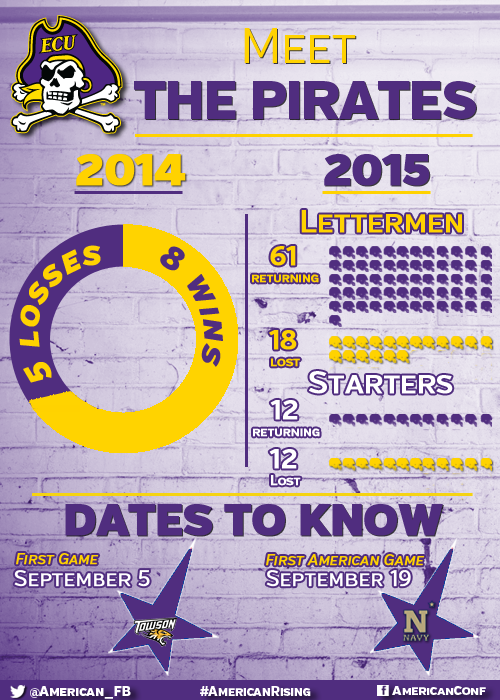 The Pirates registered two wins against top-25 opponents last year, defeating No. 17 Virginia Tech and No. 25 North Carolina in nonconference play.