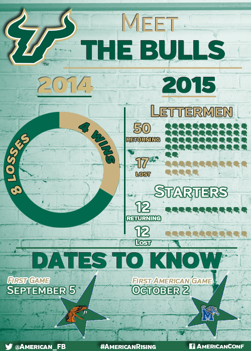 The Bulls will have new coordinators on both offense and defense in 2015. Co-offensive coordinator Danny Hope was formerly the head coach at Purdue.